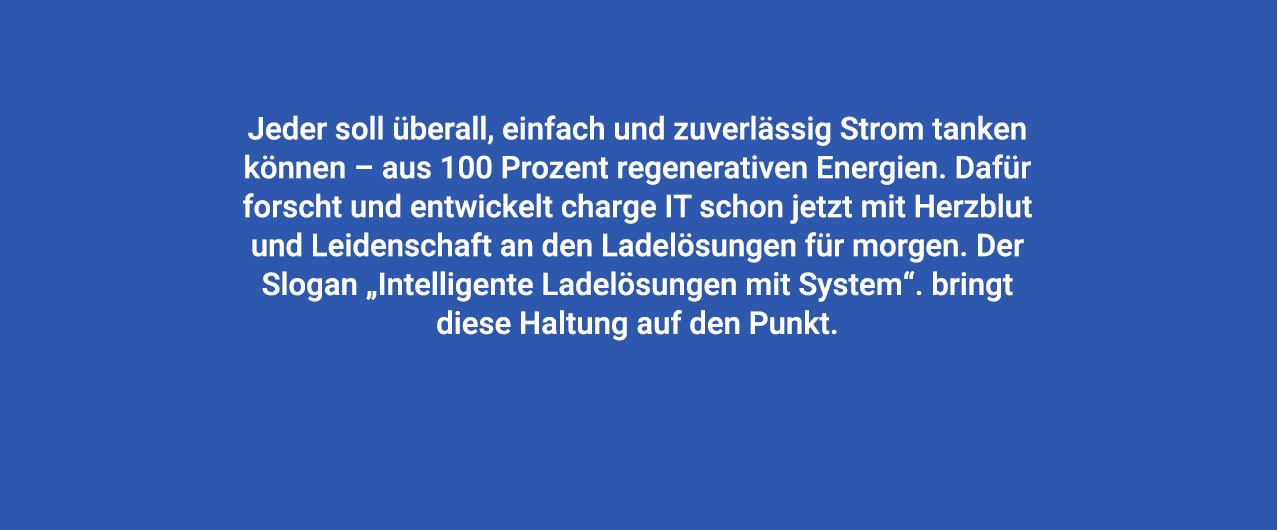 Dieses Unternehmen hat Großes im Sinn: charge IT möchte E-Mobilität für alle zugänglich machen. Zu jeder Zeit an jedem Ort aus 100% regenerativer Energie.