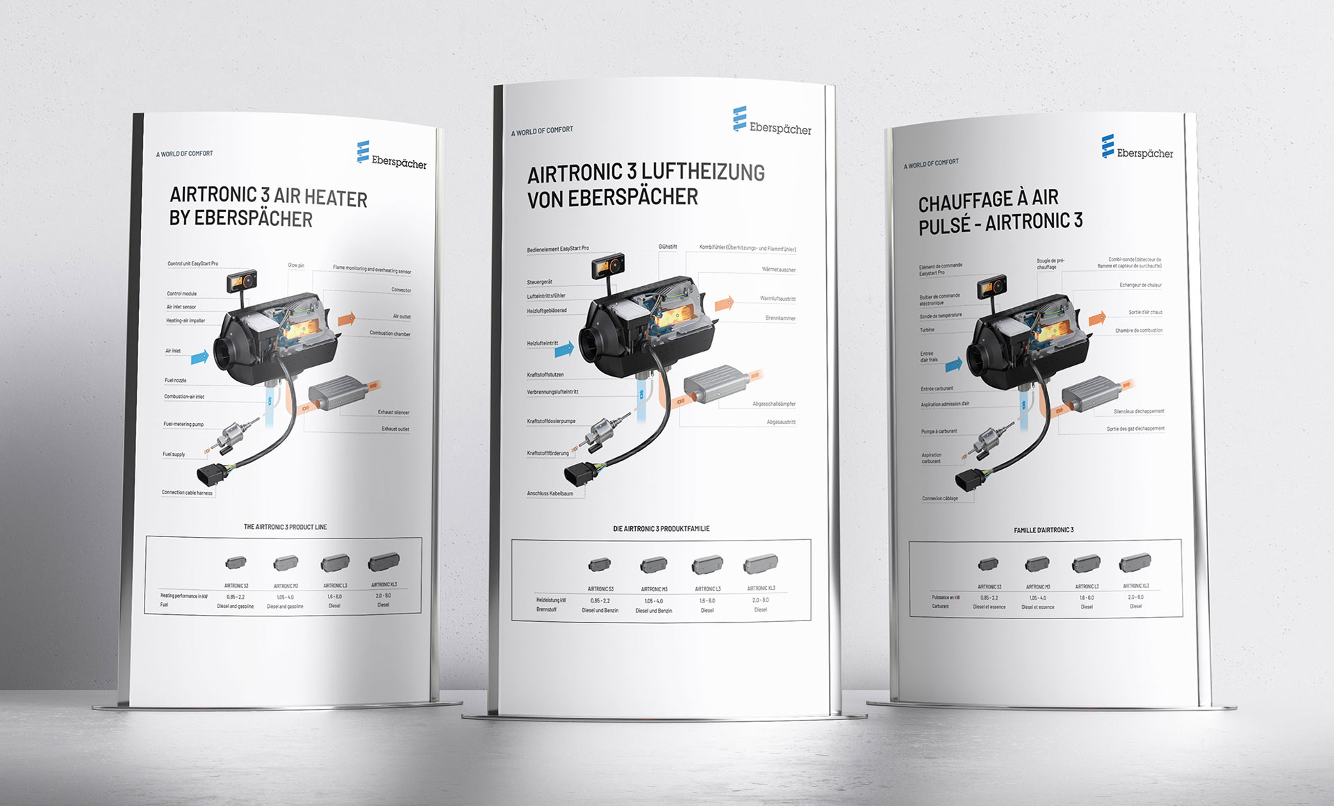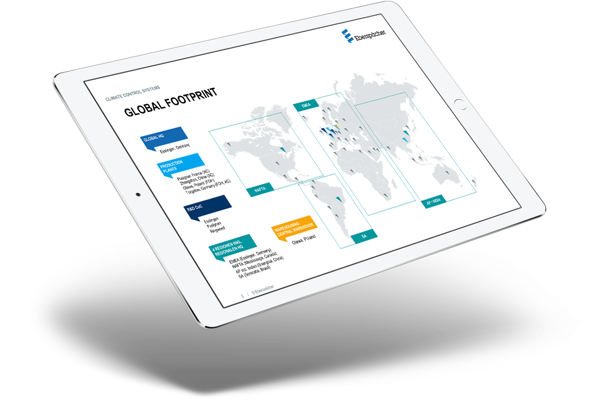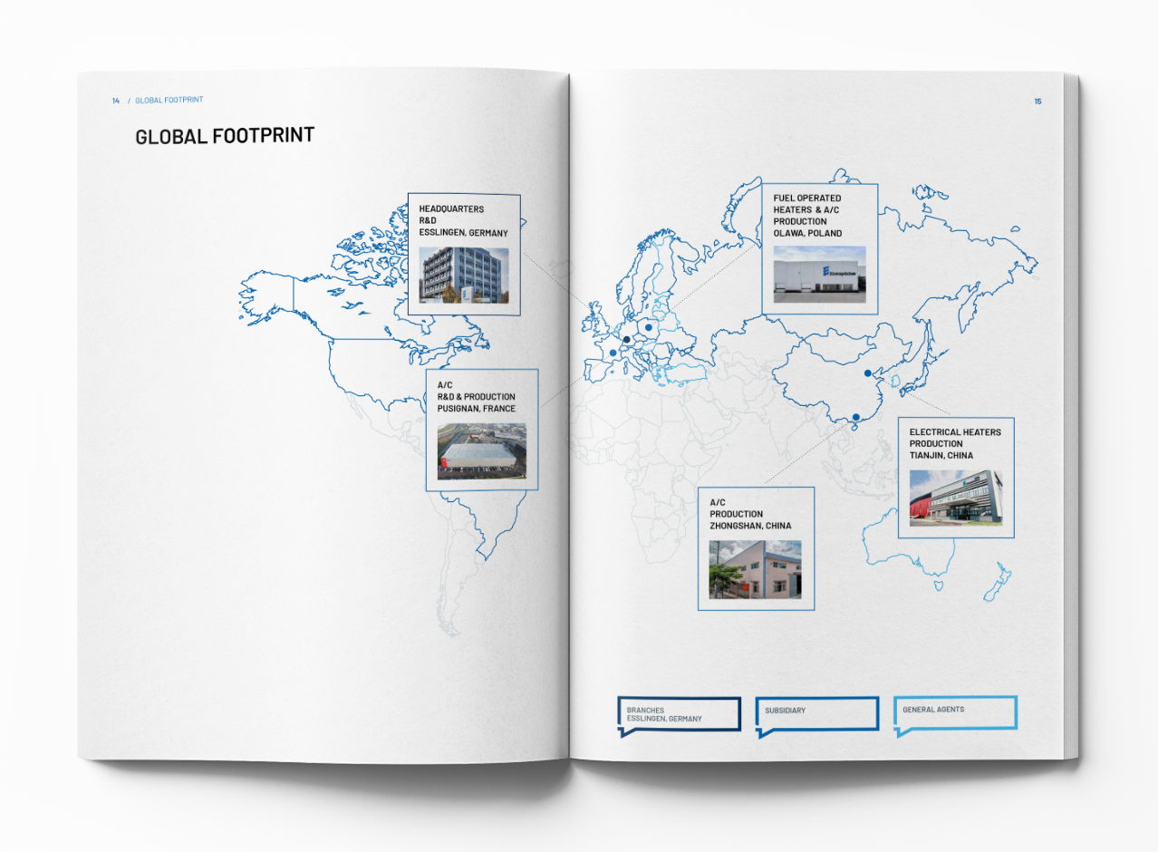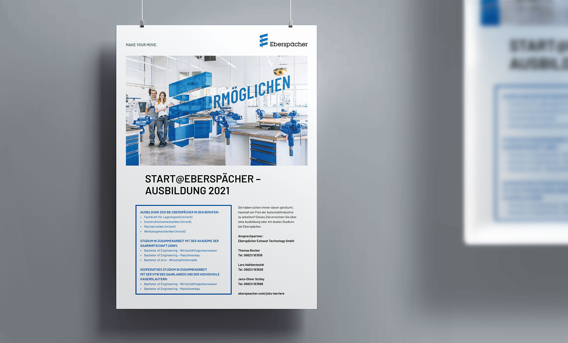 Die Eberspächer Gruppe zählt weltweit zu den führenden Systementwicklern und -lieferanten für Abgastechnik, Fahrzeugheizungen und -elektronik sowie Klimasystemen mit mehr als 10.000 Mitarbeiter weltweit. Im Fokus der zukünftigen Unternehmensstrategie liegen dabei das Thema Clean Mobility und Pure Emissions. Unsere Aufgabe? Mit welchem neuen Corporate Design muss die Eberspächer Gruppe zukünftig am Markt auftreten, die diese Strategie trägt, unterstützt und überzeugend visualisiert.