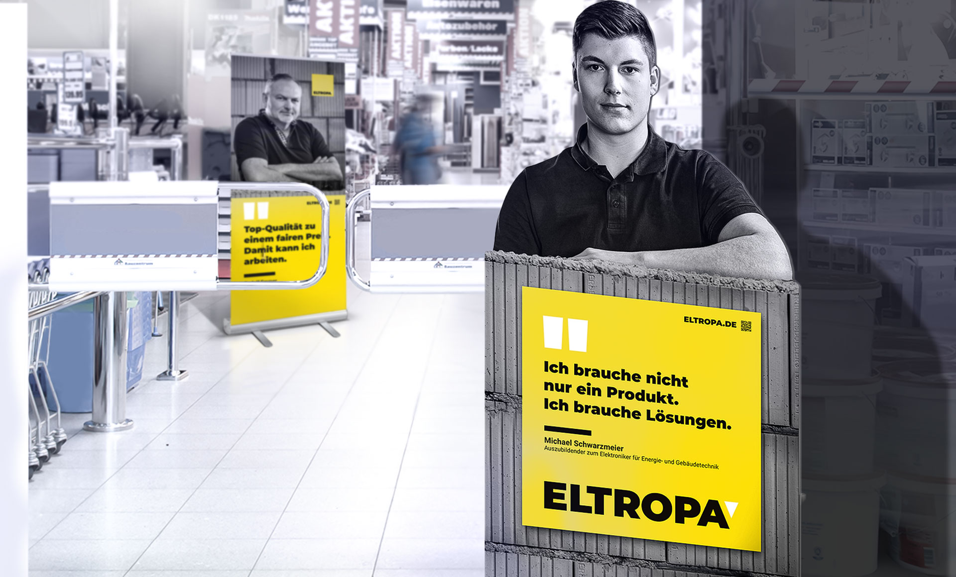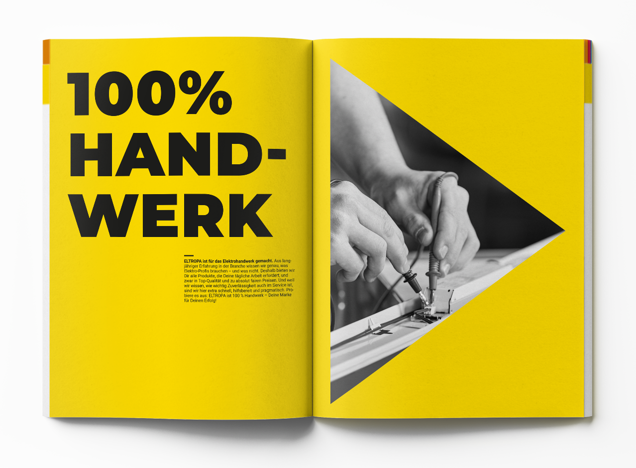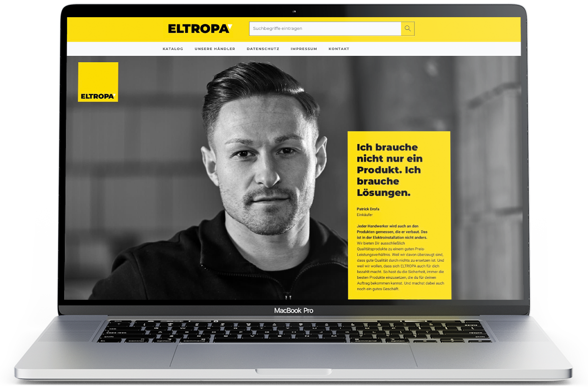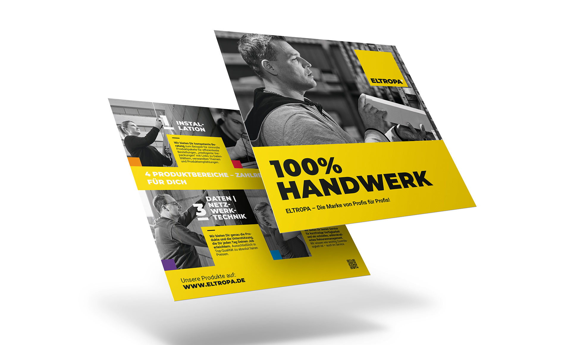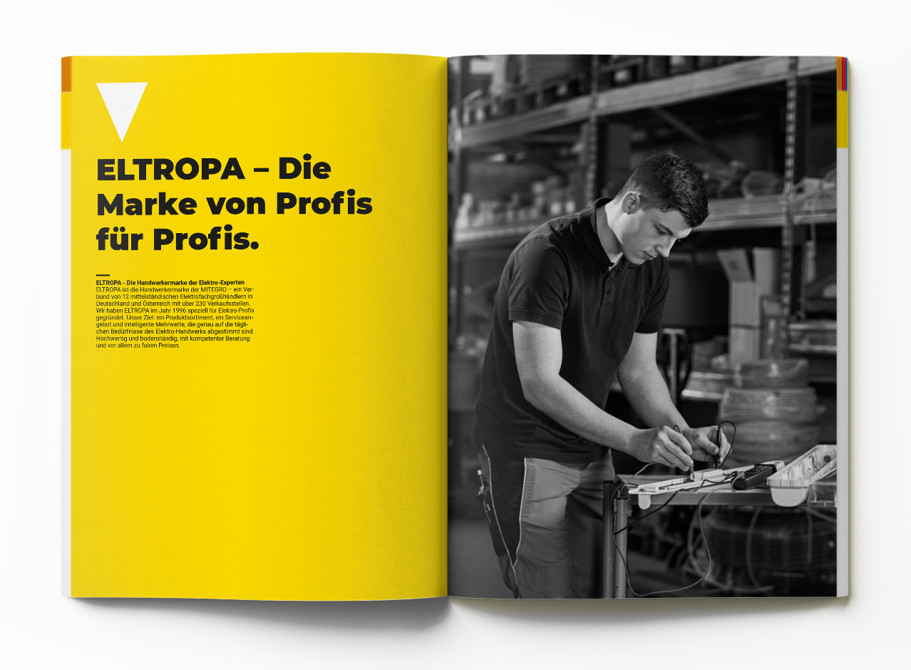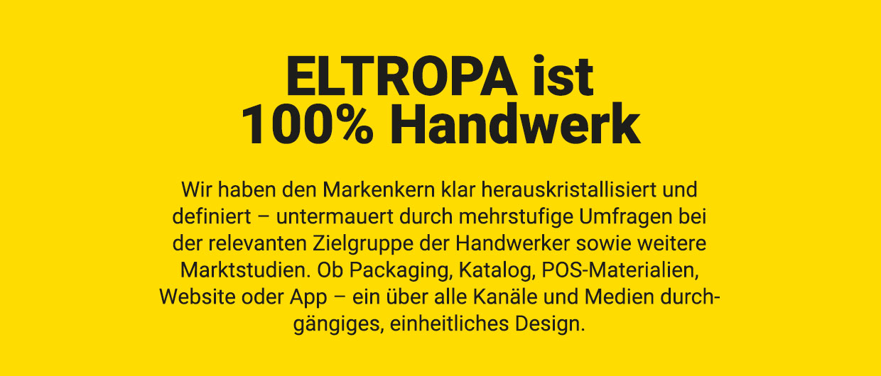 Die Elektro-Handwerkermarke ELTROPA ist eine Marke der Mitegro GmbH & Co. KG – ein Verbund aus mittelständischen Elektrofachgroßhändlern in Deutschland und Österreich. ELTROPA ist bereits seit 1996 bei der Zielgruppe bestens bekannt. Die Aufgabe: Aus dem guten Namen eine starke B2B-Marke kreieren, dabei die Markenidentität aktualisieren und den Gesamtauftritt moderner, frischer, frecher gestalten.