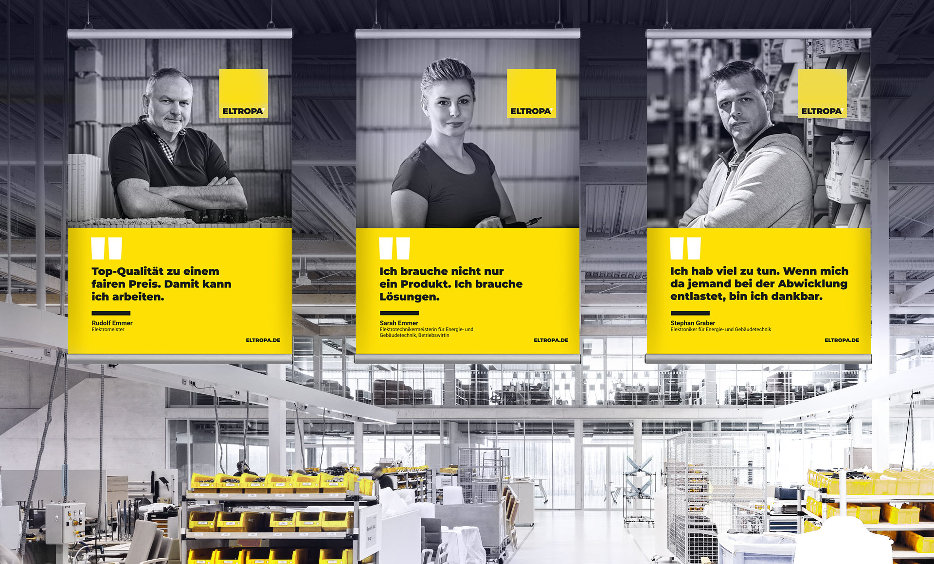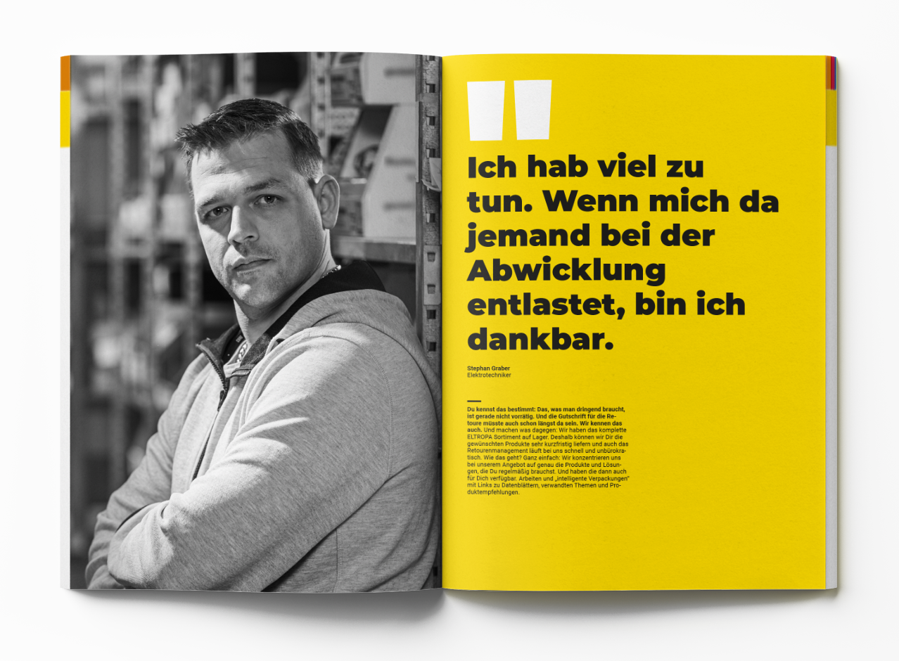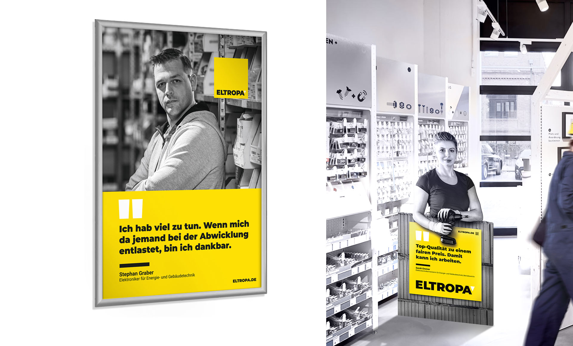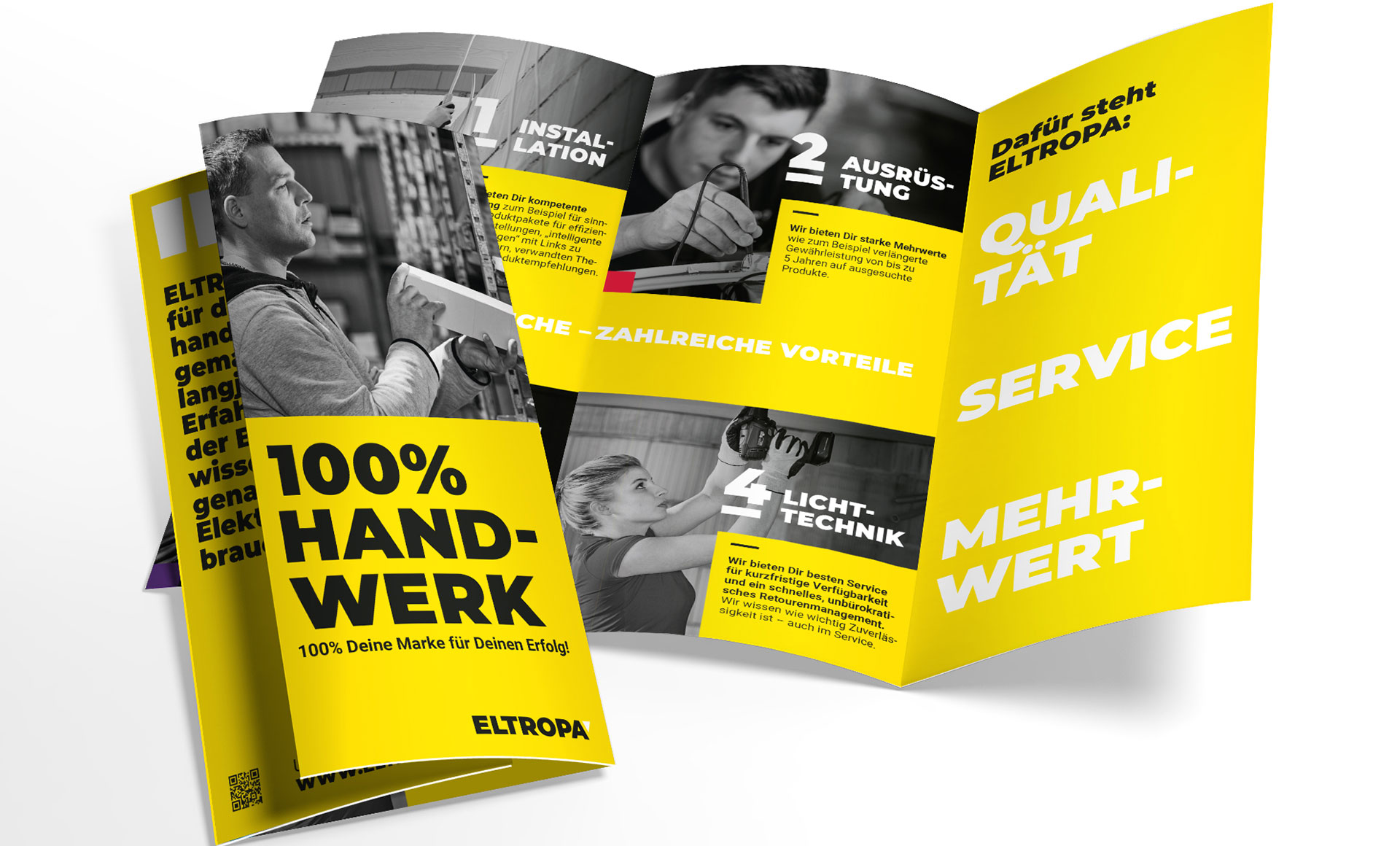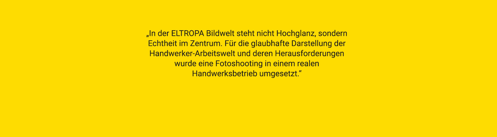 Die Elektro-Handwerkermarke ELTROPA ist eine Marke der Mitegro GmbH & Co. KG – ein Verbund aus mittelständischen Elektrofachgroßhändlern in Deutschland und Österreich. ELTROPA ist bereits seit 1996 bei der Zielgruppe bestens bekannt. Die Aufgabe: Aus dem guten Namen eine starke B2B-Marke kreieren, dabei die Markenidentität aktualisieren und den Gesamtauftritt moderner, frischer, frecher gestalten.