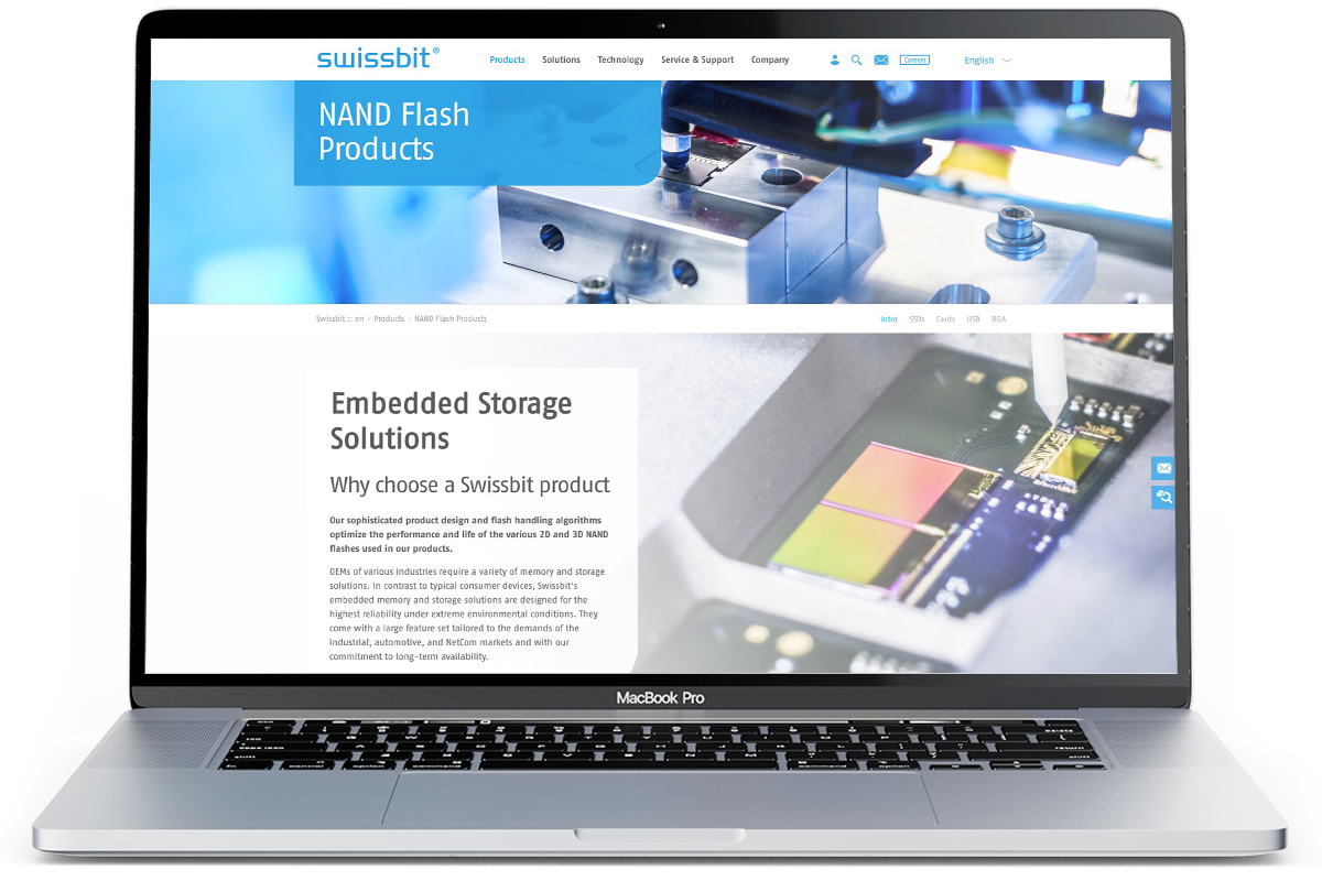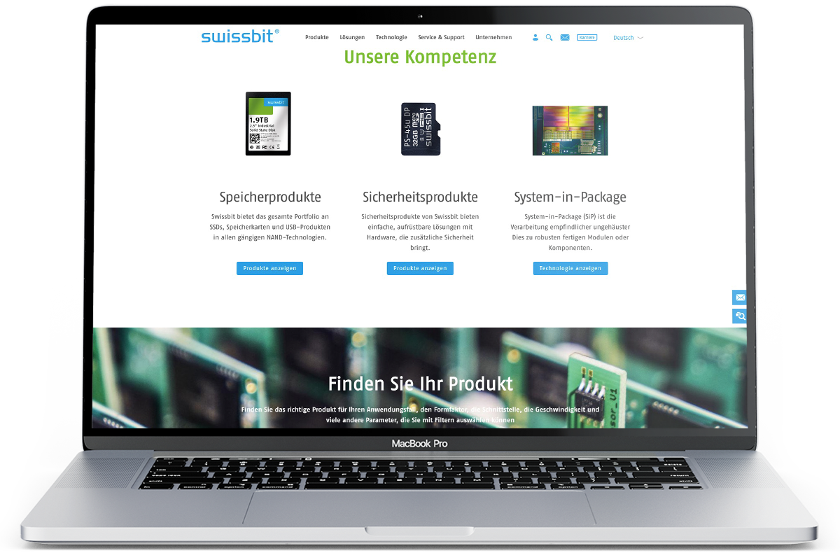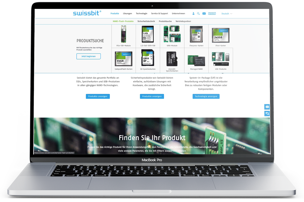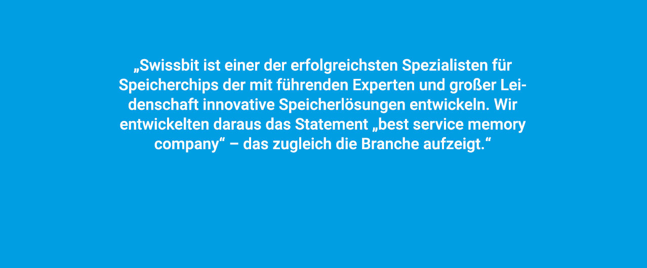 Als einer der erfolgreichsten Spezialisten für Speicherchips arbeitet Swissbit gemeinsam mit führenden Experten leidenschaftlich an der Entwicklung innovativer Speicherlösungen. Absolute Kundennähe und eine hohe Usability beim Kaufprozess sind in diesem Umfeld Pflicht. Wir haben zu der Pflicht noch die Kür geliefert: ganzheitlicher Markenrelaunch mit neuem digitalen Vertriebsprozess.