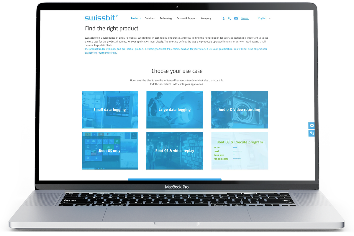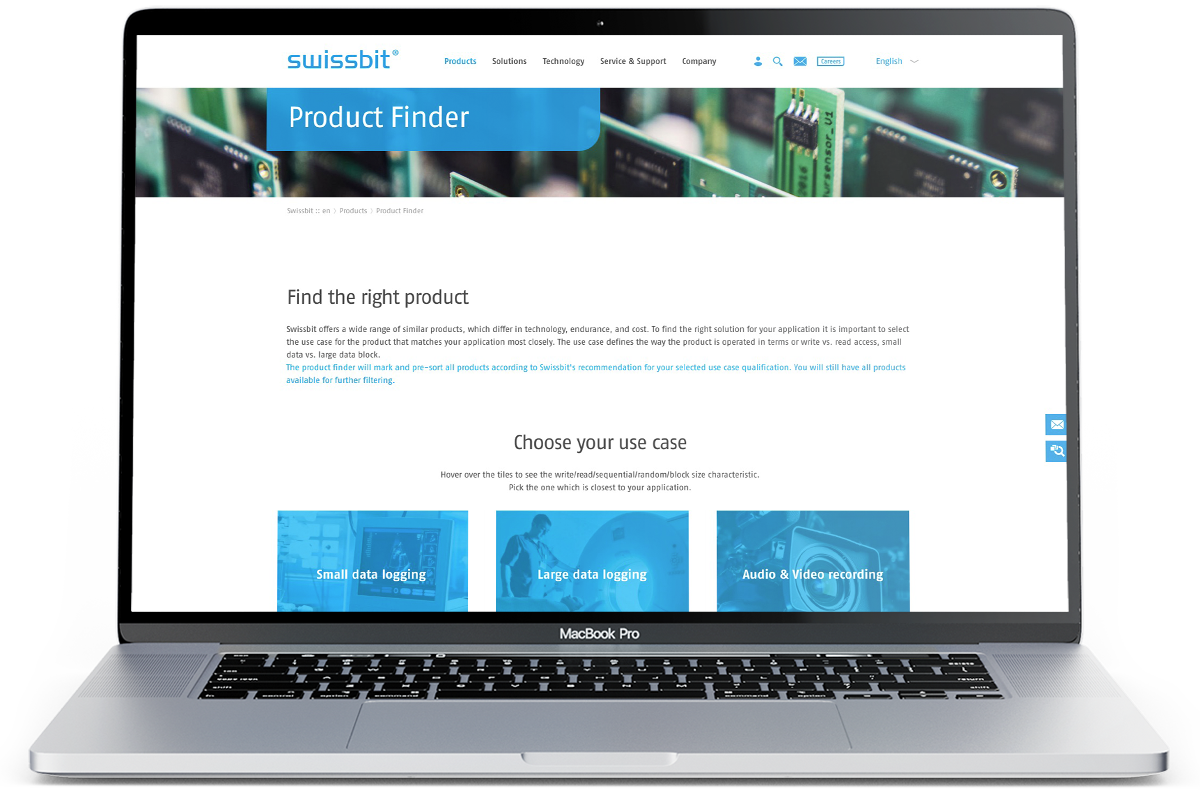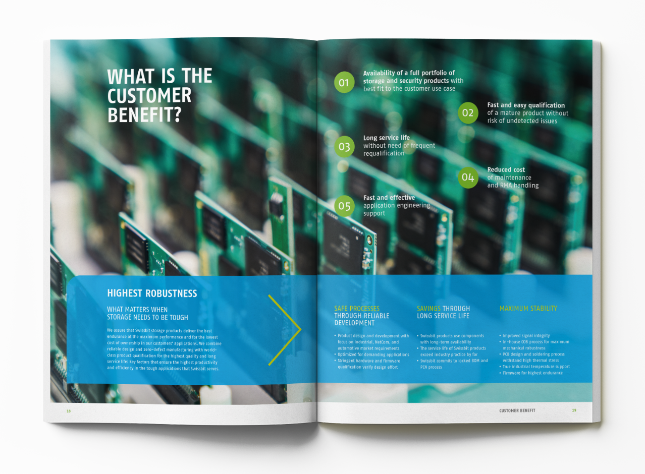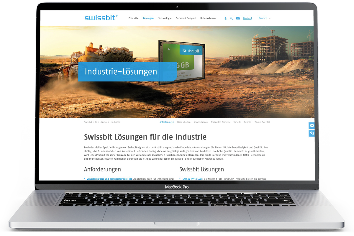 Als einer der erfolgreichsten Spezialisten für Speicherchips arbeitet Swissbit gemeinsam mit führenden Experten leidenschaftlich an der Entwicklung innovativer Speicherlösungen. Absolute Kundennähe und eine hohe Usability beim Kaufprozess sind in diesem Umfeld Pflicht. Wir haben zu der Pflicht noch die Kür geliefert: ganzheitlicher Markenrelaunch mit neuem digitalen Vertriebsprozess.